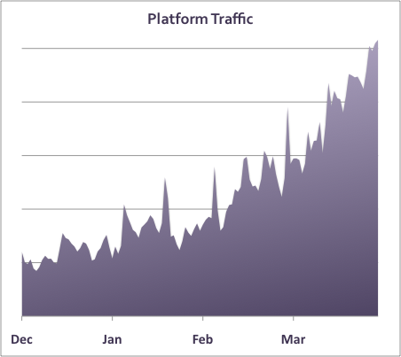 As you can imagine, traffic is growing even more quickly, serving billions of requests per month. In fact, traffic has grown by 4x over the last four months: