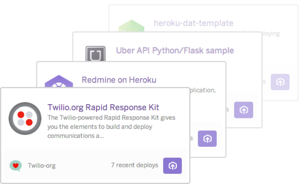 Heroku Buttons make the experience of cloning code and deploying an app as easy as a single click. There are already thousands of Heroku Buttons available — click any one of them and the source code will get cloned into your Heroku account, then the app will be provisioned, configured, and deployed automatically. Within a few seconds, you’ll have a fully-configured app there in your Dashboard, complete with database and add-ons, ready for you to get to work — as well as deployed live to the web. Got an app or a project you’d like a Heroku Button for? It’s easy to create a Heroku Button, just build an apps.json manifest for your app and all its dependencies, then follow a few additional steps to make it live.